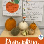 We integrated our science lessons into our pumpkin unit with a day of investigations. The students visited 5 different stations to learn about the following. They completed a page in their Pumpkin Investigations notebook at each station.