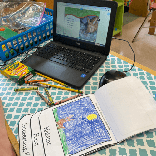 Once students understand animal habitats, they choose an animal to learn more about. You can let them browse nonfiction books, choose from a class list, or use online libraries like Epic Books. After learning about their animal, students complete a graphic organizer to organize their ideas.
